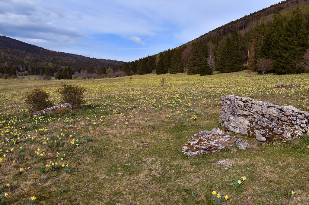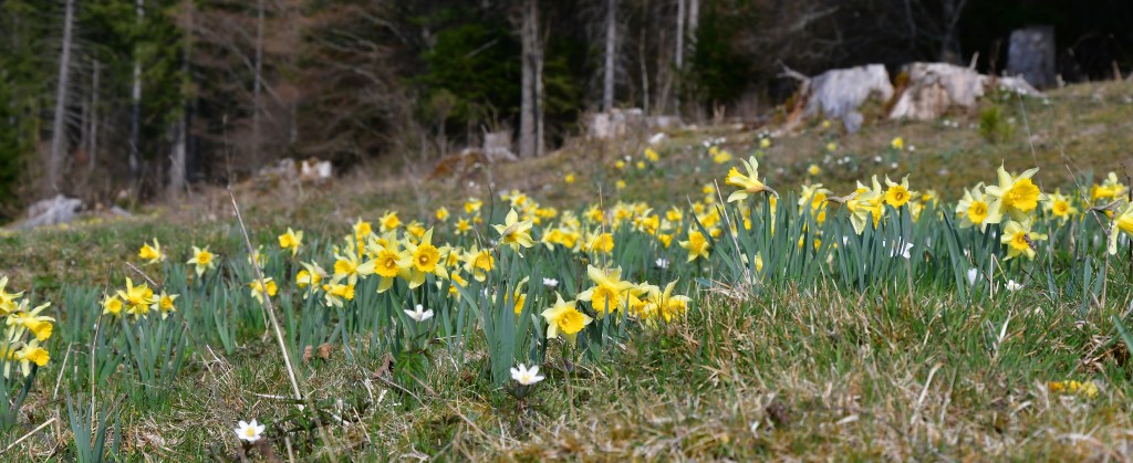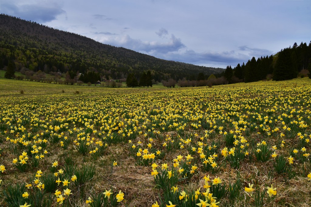 Pour le plaisir de nos yeux, cette année a été propice à la floraison des jonquilles. Effectivement, un climat particulièrement chaud au printemps et quelques précipitations au bon moment et ce fut l’éclosion. C’est avec enthousiasme que je me rends au Pré-Vaillon à Nods pour immortaliser cette féérie.