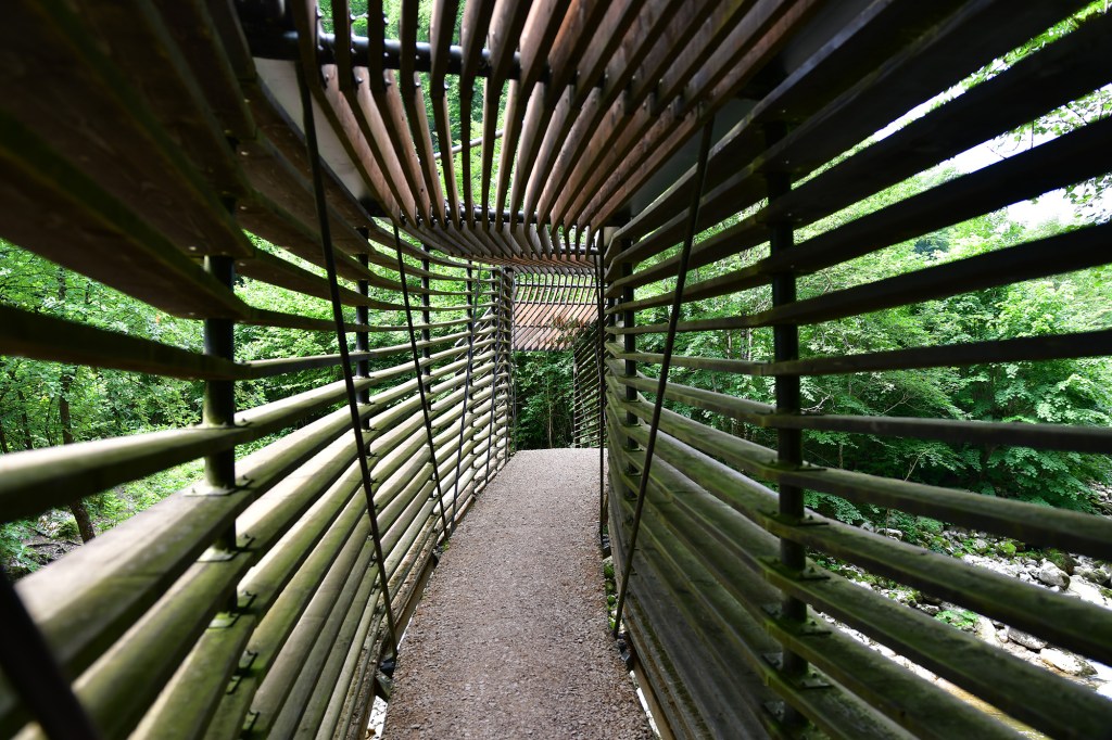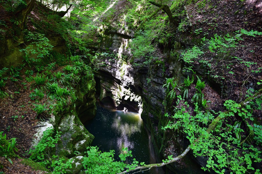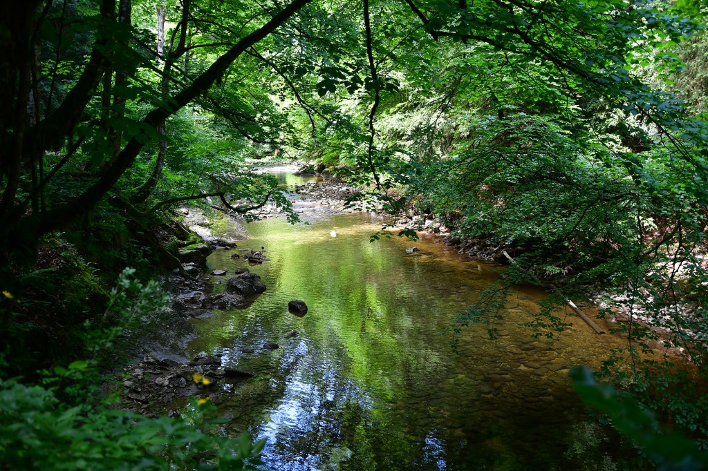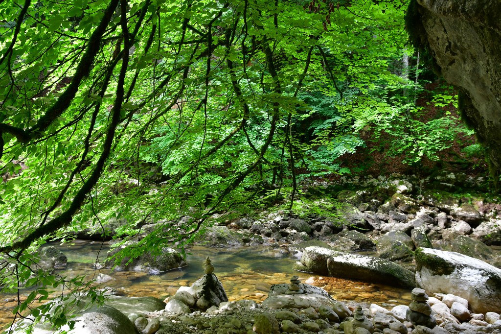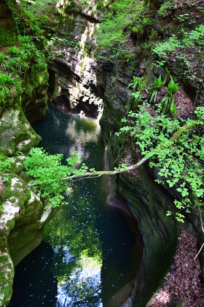 Le printemps est bien installé et la lumière est belle, de bons atouts pour la visite des gorges. La promenade depuis Boudry sillonne entre gouffres et chemins étroits et accidentés pour s’élargir doucement au cours de la balade jusqu’au champ du Moulin. Le paysage est frais et verdoyant.