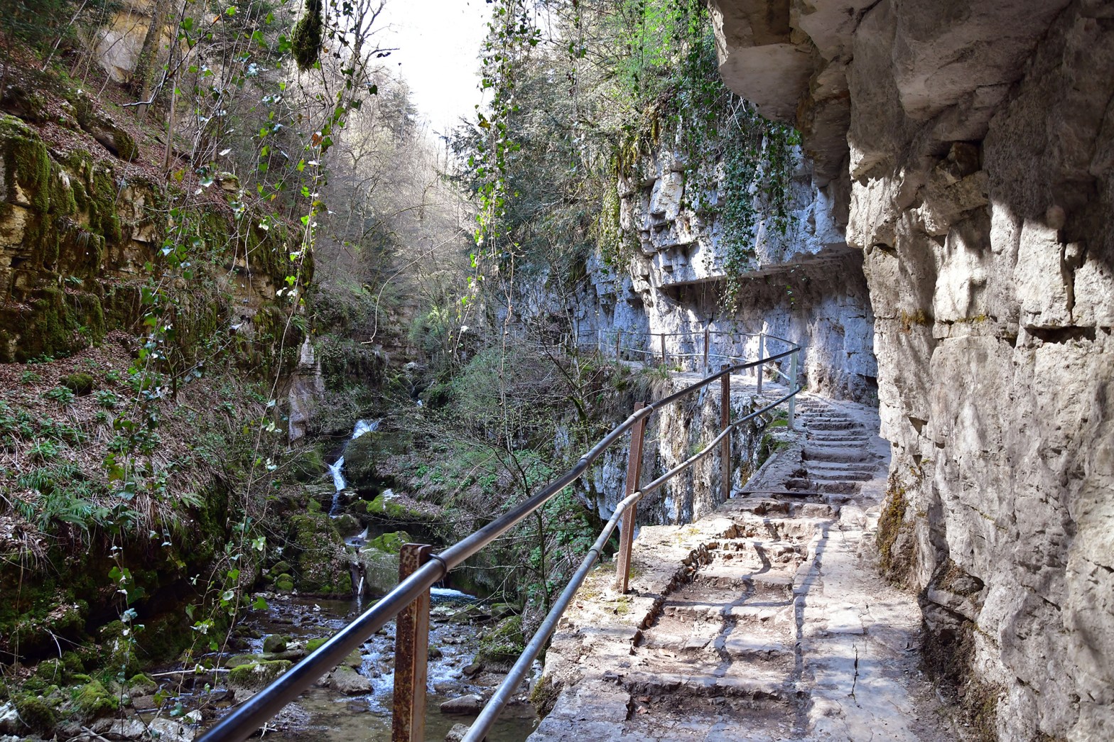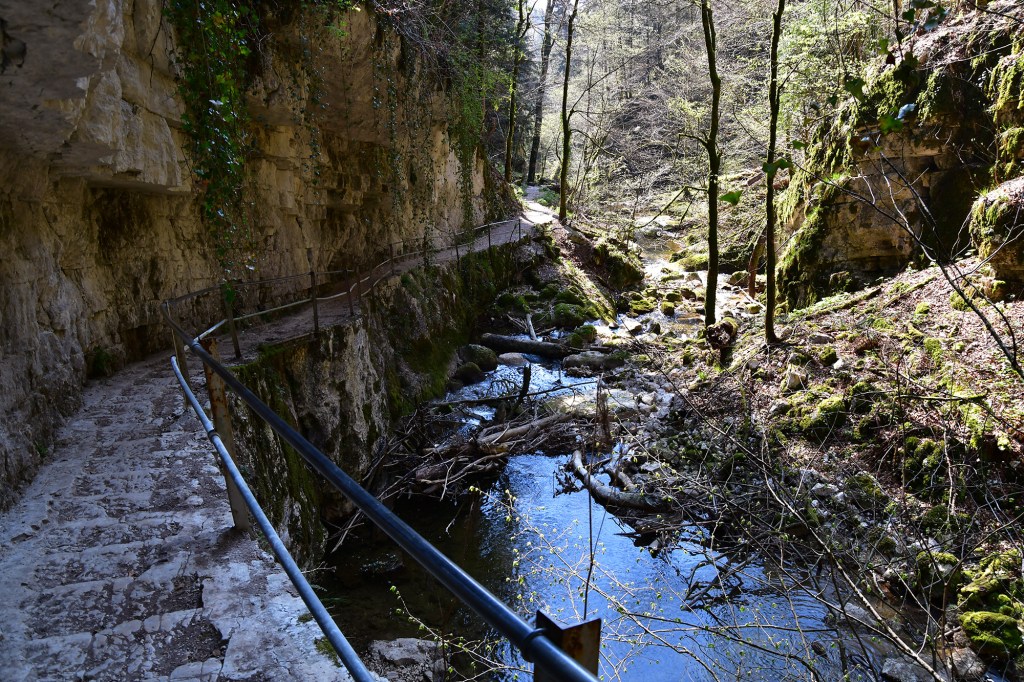Le printemps pointe le bout de son nez et le retour des températures agréables donne envie d’aller se faufiler entre eau et rocher. La balade démarre à Schernelz et c’est entre ombre et lumière et la venue des premières fleurs que la balade se poursuit.