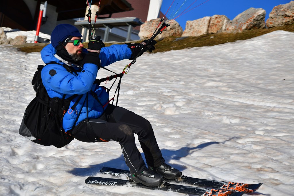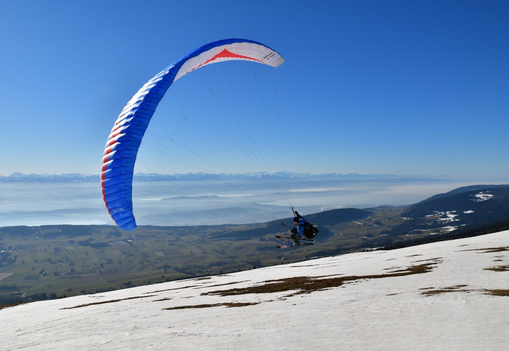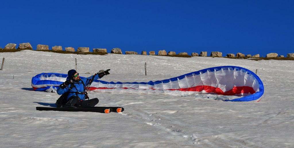 Ce matin là, je l’accompagne aux premières heures. Il fait doux et le soleil s’annonce radieux. Il règne une ambiance bonne enfant, chacun son objectif en tête… Olivier de monter vite vite vite pour ne pas rater le début du soaring et moi d’avancer à pas lents pour observer ce qu’il se passe ici et là et d’assister au lever du soleil qui pointe gentiment son nez.