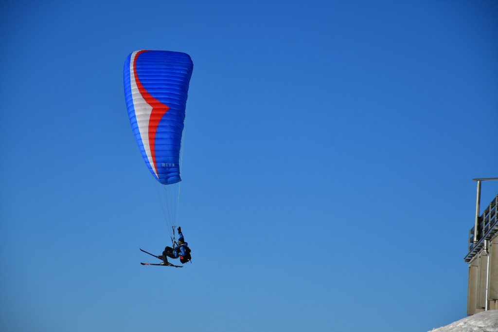 Je le vois de loin dans son terrain de jeu et j’assiste à un spectacle qui me donne le vertige. Les conditions de vent sont incroyablement stables et j’immortalise Olivier le bien heureux dans son élément. Il s’amuse comme un fou et moi aussi à le regarder faire le clown en l’air.