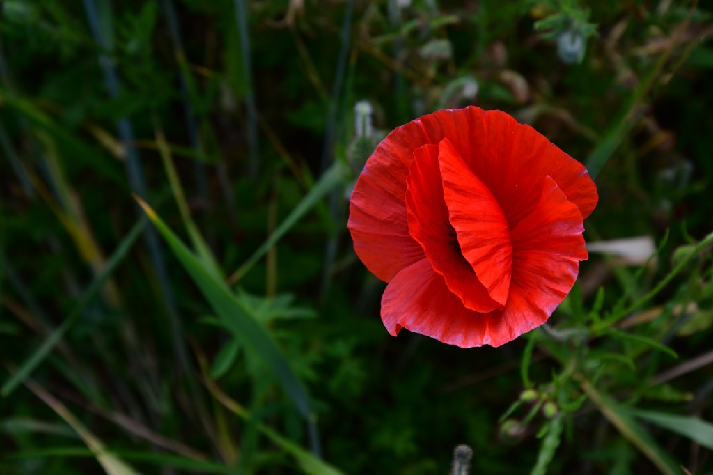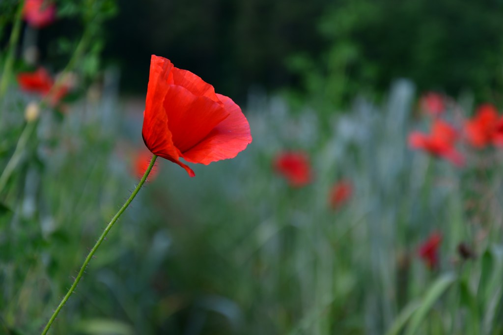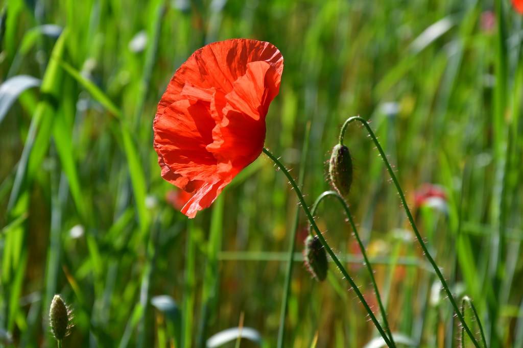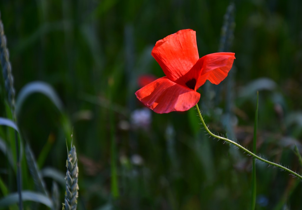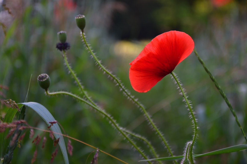 Jolie fleurs, fragile, d’un rouge profond, elle papillonne au vent et n’est pas facile à photographier tant elle se dandine dans tous les sens.