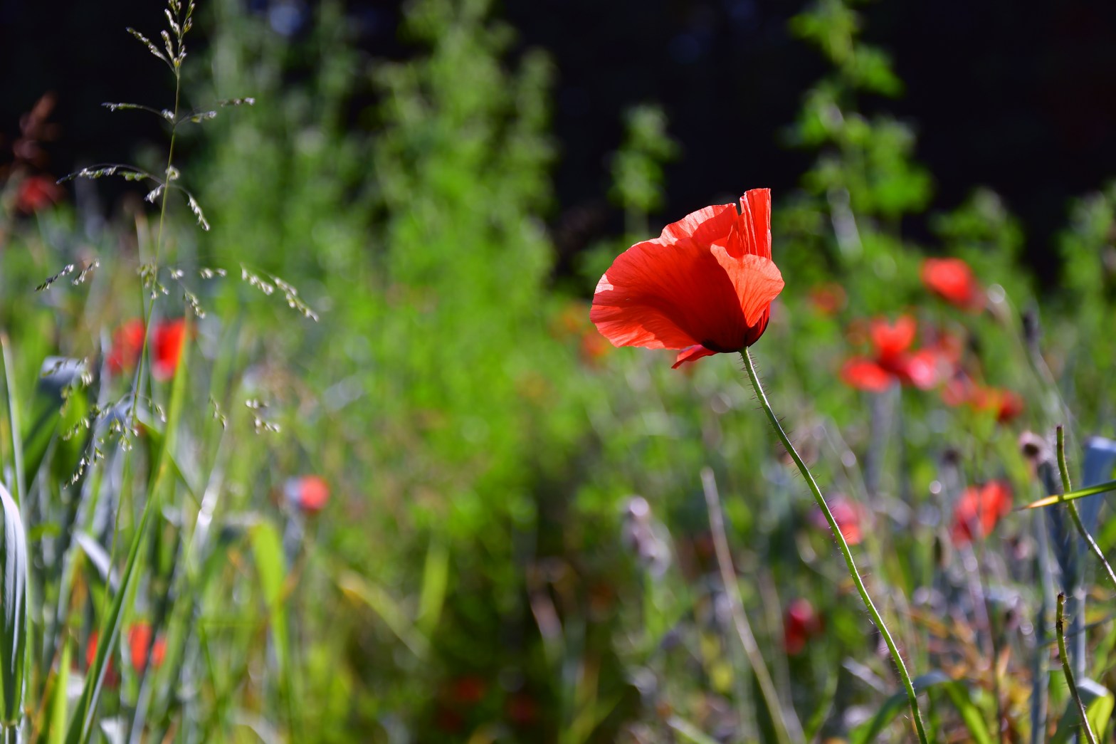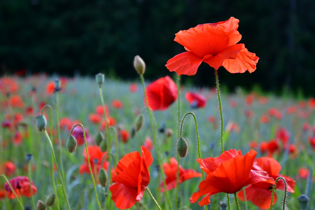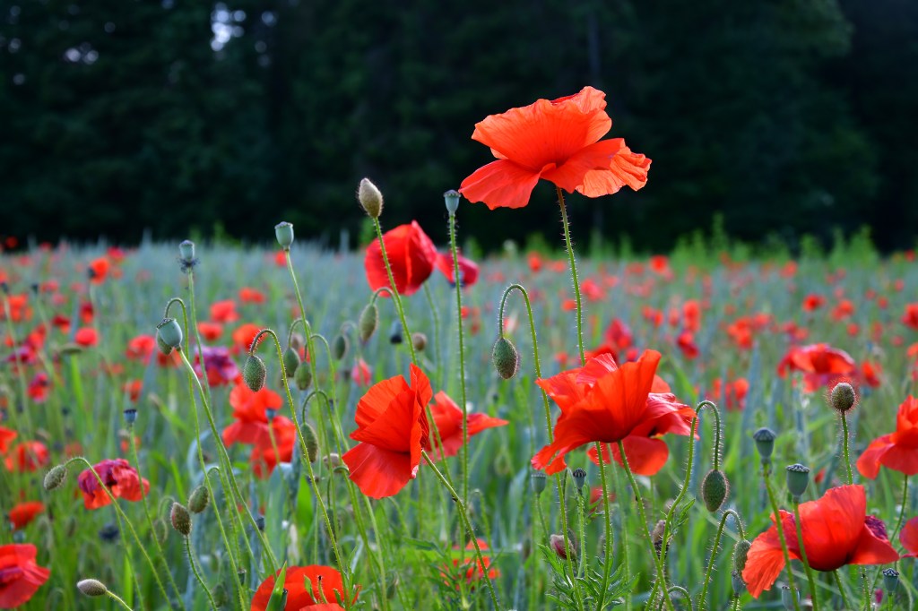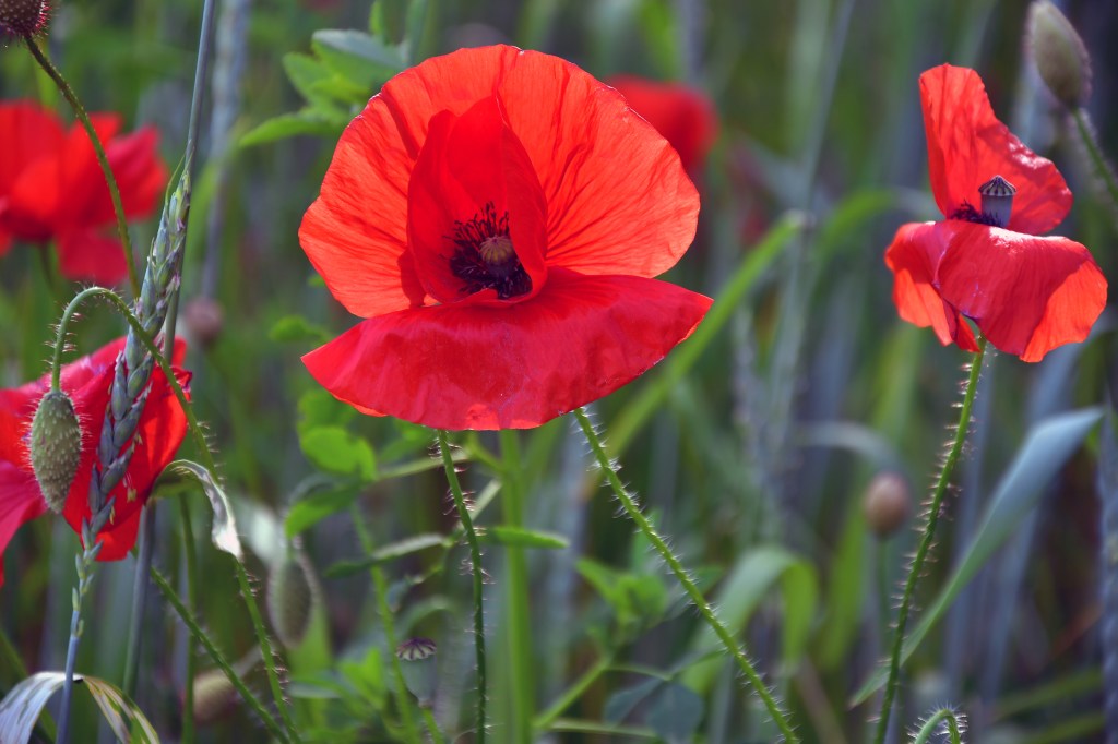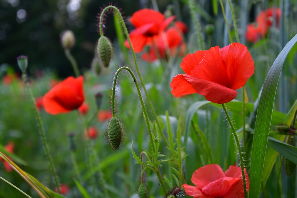 Jolie fleurs, fragile, d’un rouge profond, elle papillonne au vent et n’est pas facile à photographier tant elle se dandine dans tous les sens.