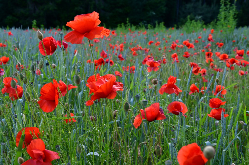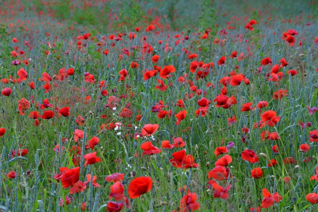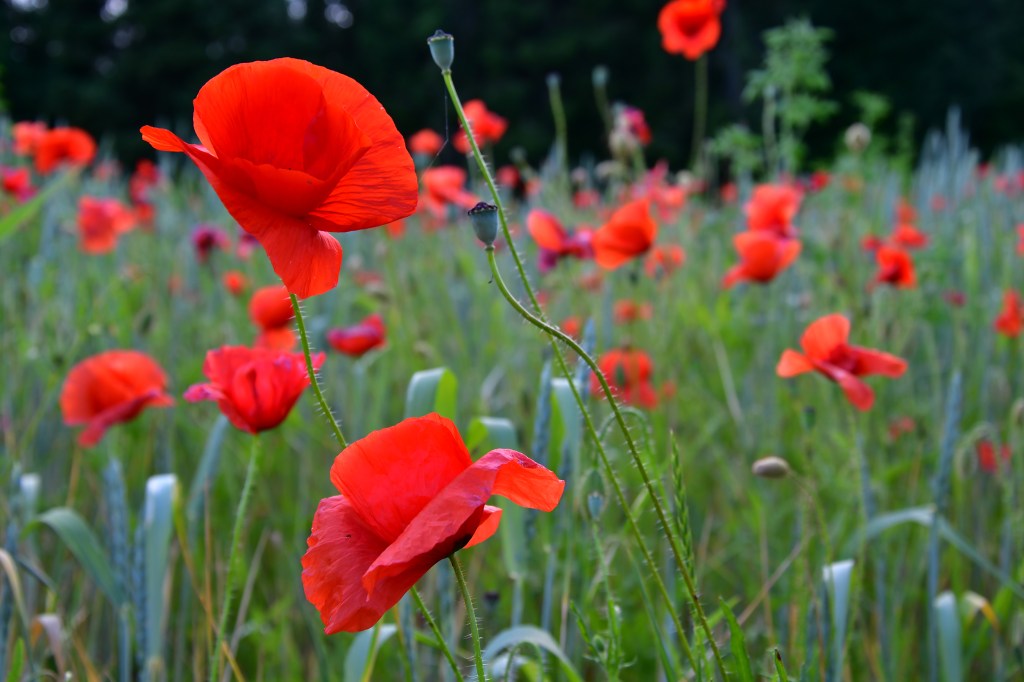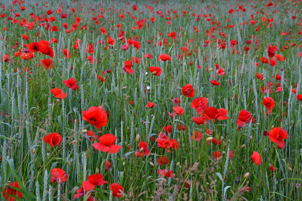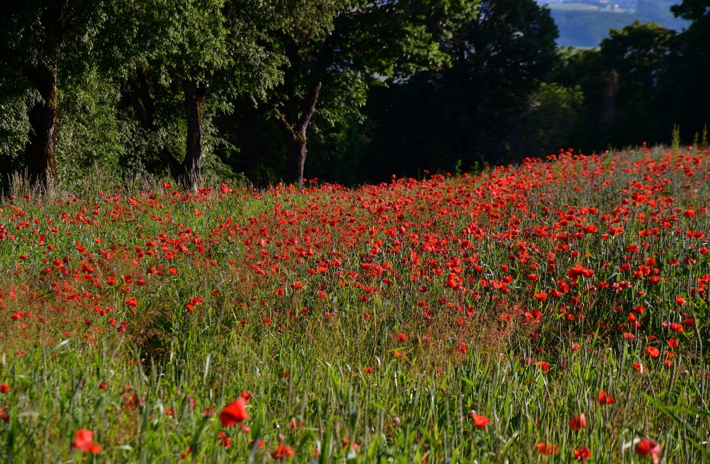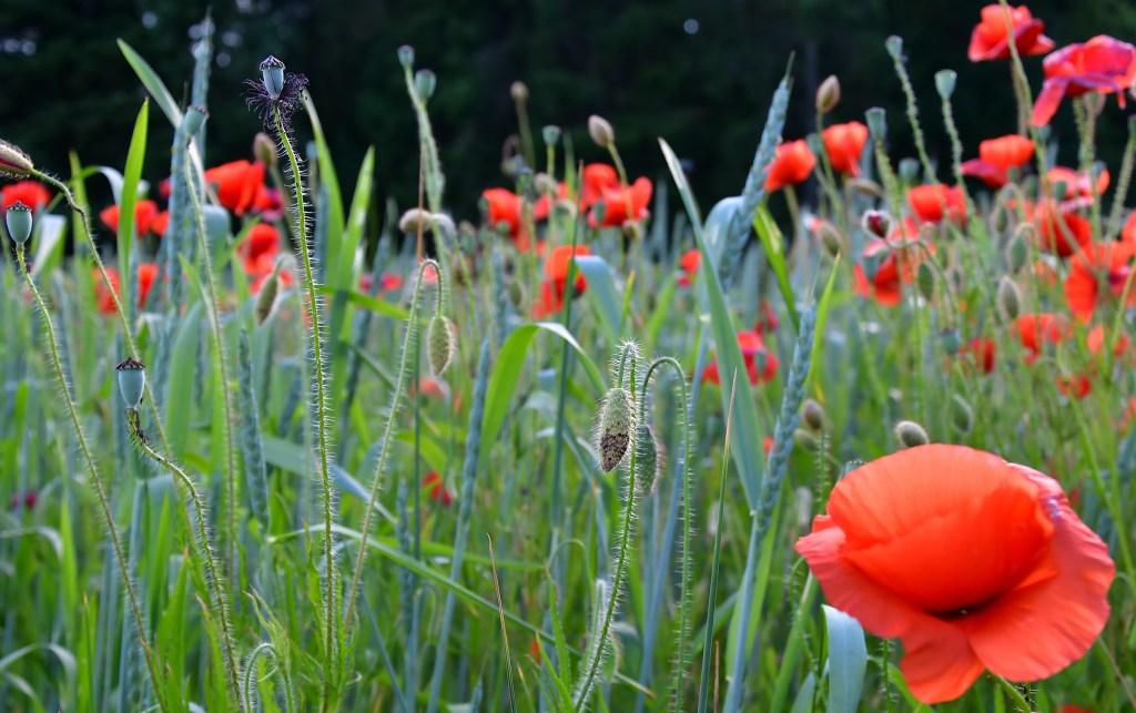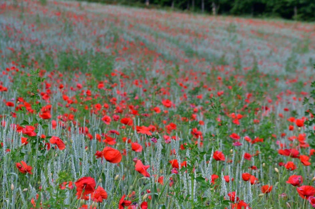 J’suis descendue dans mon jardin, j’suis descendue dans mon jardin pour y cueillir du romarin…jolis coquelicots mesdames…jolis coquelicots nouveaux…la la la.. je suis descendue plusieurs fois sur le Landeron, me répétant, faudra que t’ailles les photographier…y’a ce champ de blé plein de coquelicots dans le virage ! et bien voilà, c’est fait 🙂