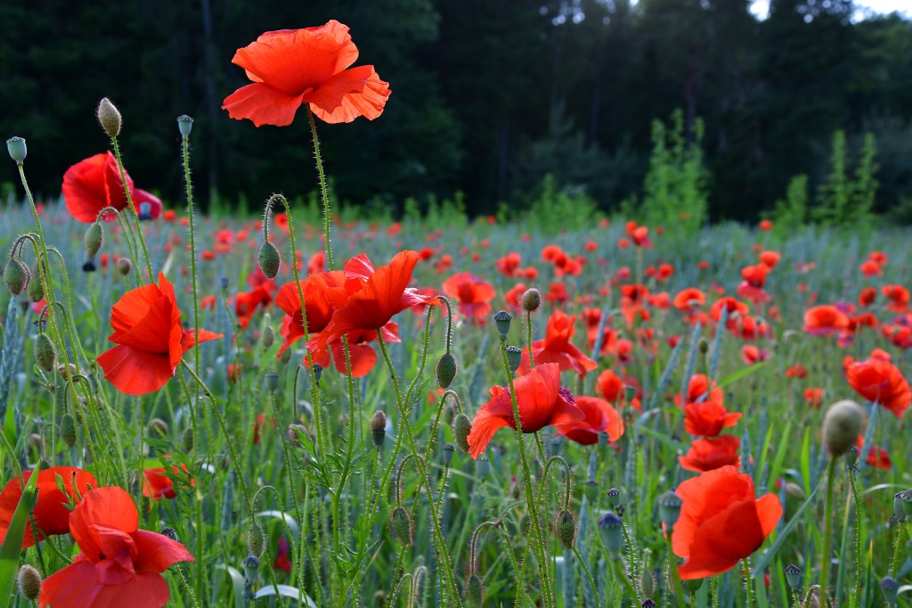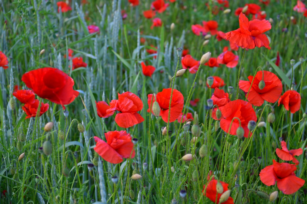 Le coquelicot, petit pavot sauvage de couleur rouge, est comme ce dernier l’emblème du repos et de l’oubli ou encore de la consolidation « car le sommeil endort le chagrin ». Selon une légende grecque, la fleur fut créée pour Déméter, déesse de la Fertilité et de la Terre cultivée, qui était si épuisée par la recherche de sa fille Perséphone, enlevée par Hadès, qu’elle ne s’occupait plus de faire pousser le maïs. Le dieu du Sommeil lui offrit des coquelicots pour la faire dormir : lorsqu’elle fut reposée, elle put enfin se consacrer à la précieuse céréale. Les Anciens croyaient d’ailleurs que la présence de coquelicots dans un champ était indispensable à la prospérité du maïs. Qu’ils avaient raison de penser cela… c’est tellement joli…