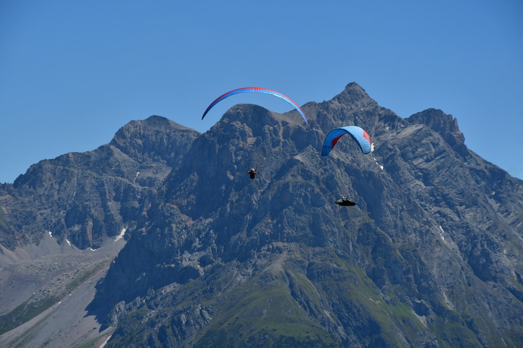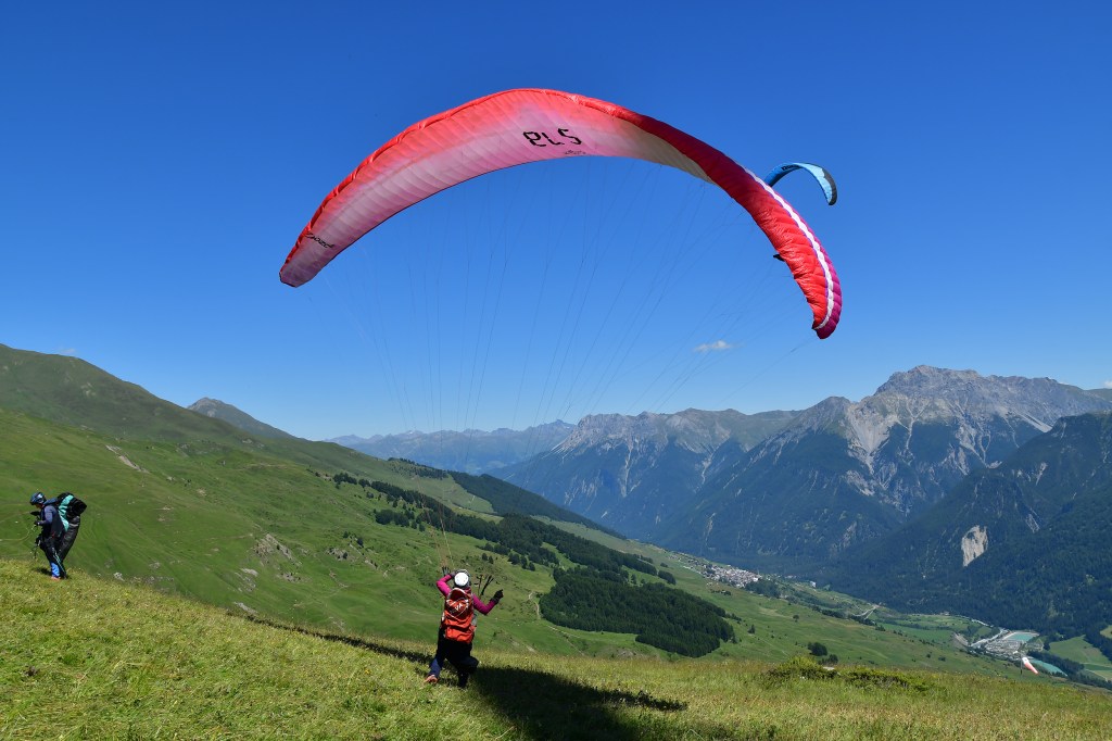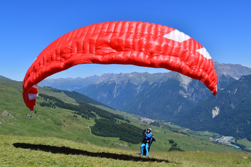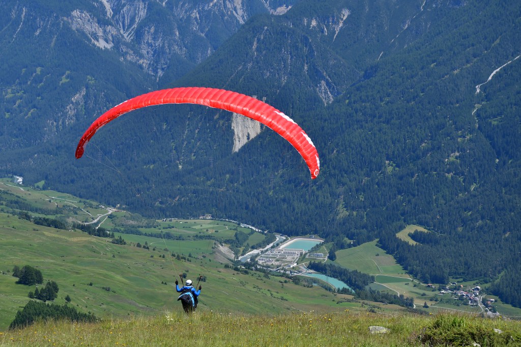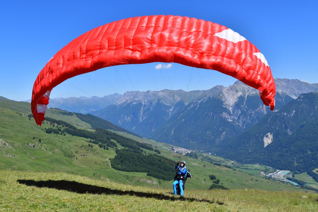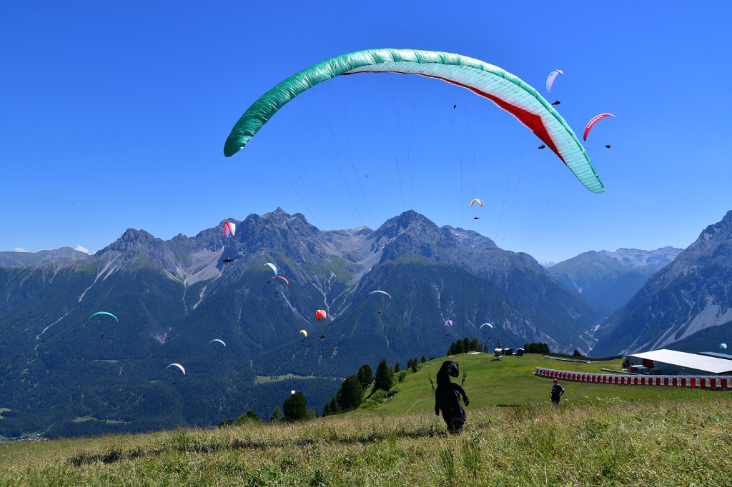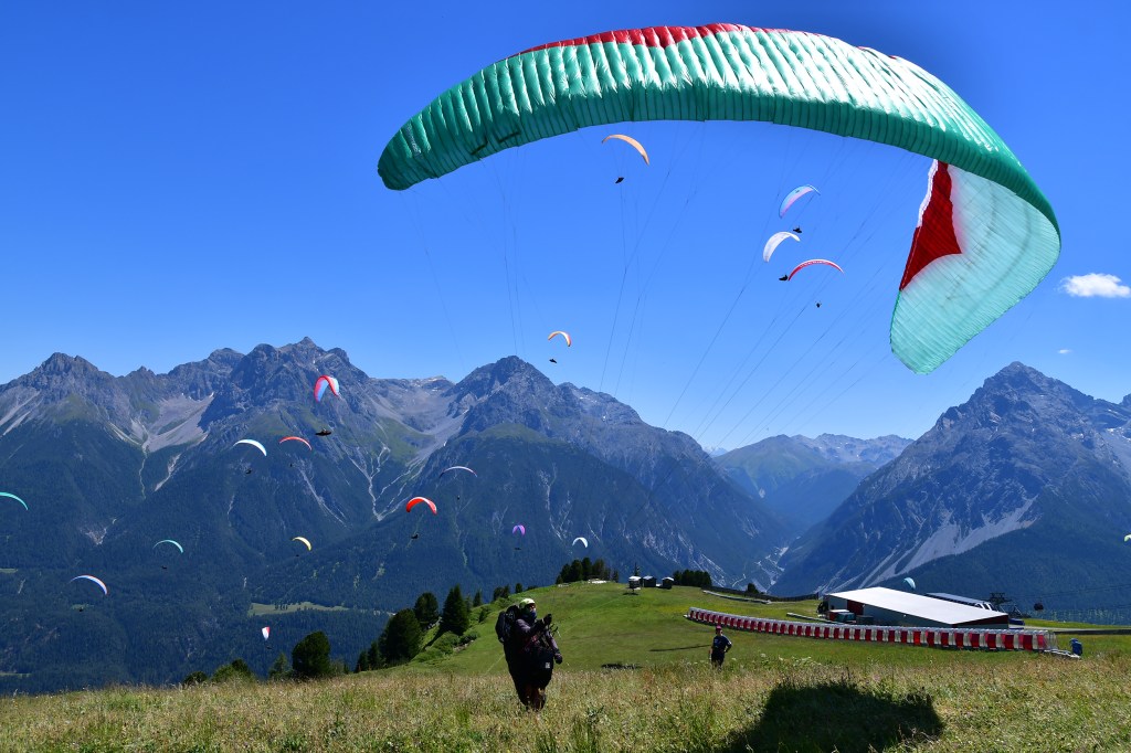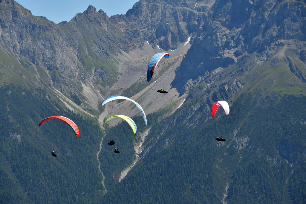 J’ai décidé de suivre mon oiseau lors de sa participation au championnat suisse de parapente qui se tenait à Scuol et j’ai bien eu raison. Scuol, petite ville située au fin fond des Grisons, en Engadine ayant comme voisins l’Italie et l’Autriche et aux abords du parc national suisse. Les maisons de la vieille ville sont teintes de « Sgraffiti » artisanat traditionnel qui date du 17ème siècle qui donne un charme inégalable à cette ville.