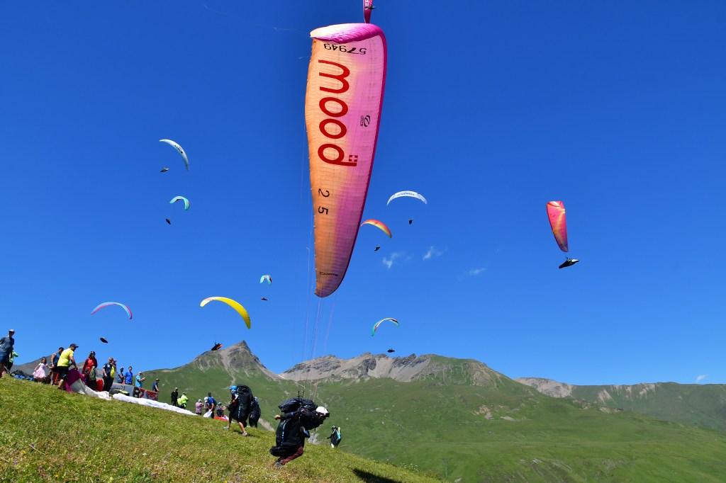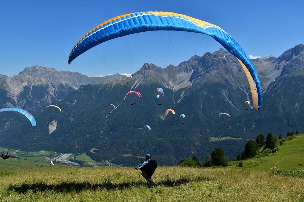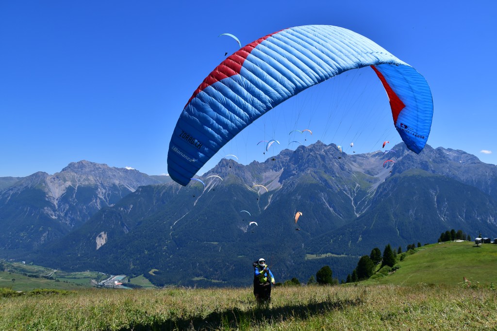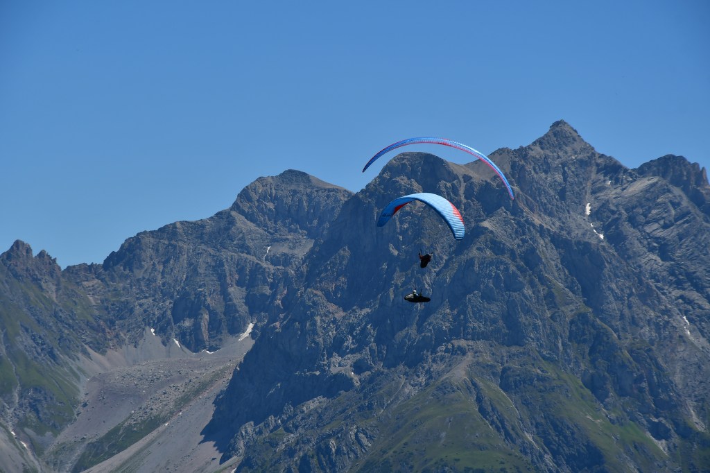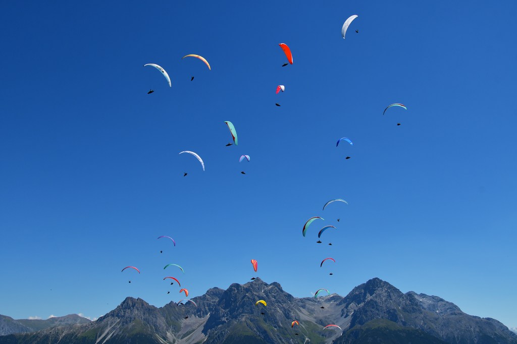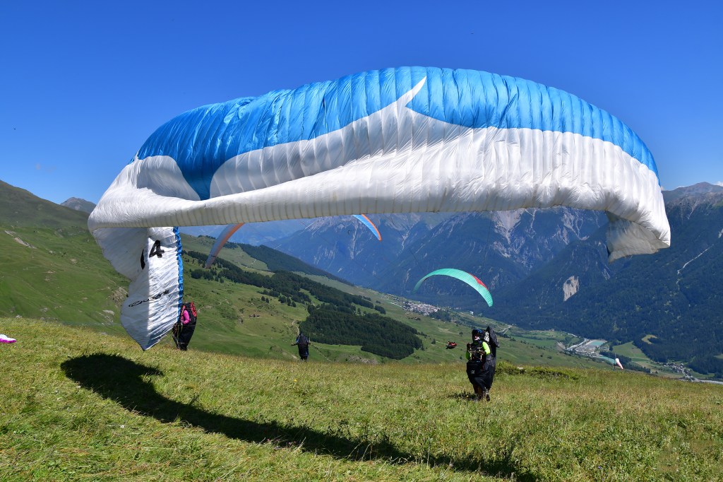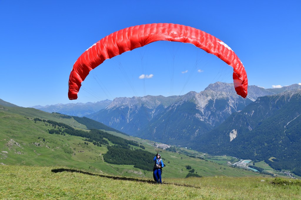 J’ai décidé de suivre mon oiseau lors de sa participation au championnat suisse de parapente qui se tenait à Scuol et j’ai bien eu raison. Scuol, petite ville située au fin fond des Grisons, en Engadine ayant comme voisins l’Italie et l’Autriche et aux abords du parc national suisse. Les maisons de la vieille ville sont teintes de « Sgraffiti » artisanat traditionnel qui date du 17ème siècle qui donne un charme inégalable à cette ville.