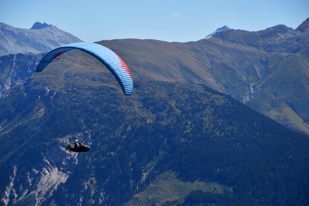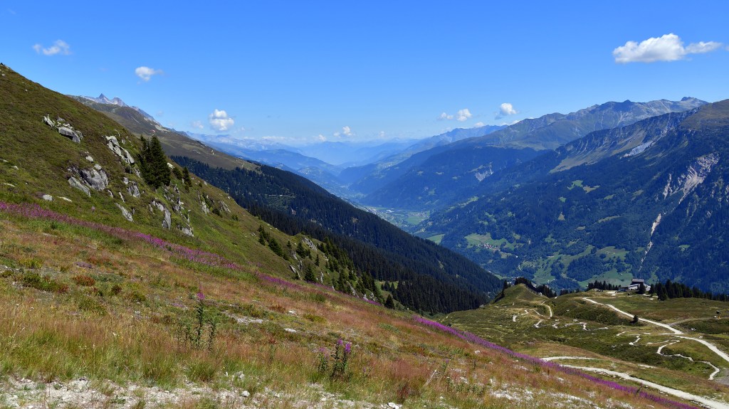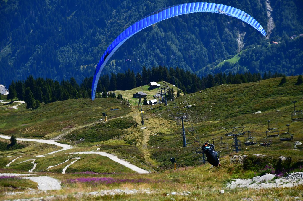 Comme d’hab, je décide de suivre mon oiseau. Il participe à l’une des nombreuses compétitions de parapente organisée par la Ligue Suisse et cette fois-ci cela a lieu à Disentis aux Grisons. A Coire, nous bifurquons direction Flims, Laax et rentrons dans la charmante vallée, sillonnant d’un joli petit village typique à l’autre jusqu’à ce que nous arrivions à bon port et c’est une abbaye qui nous accueille à l’entrée du village, sur son promontoire, imposante, majestueuse.