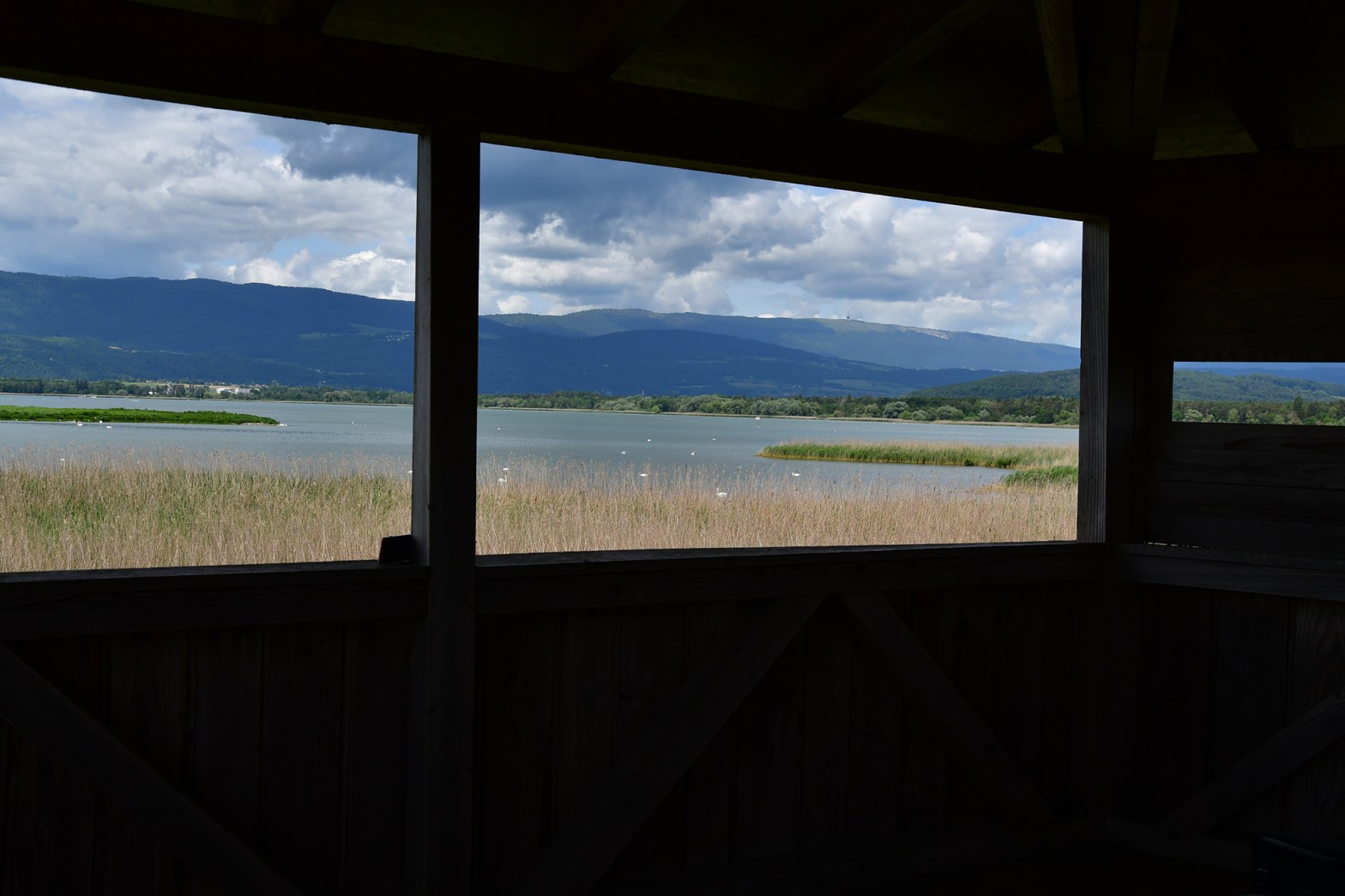 Par un ciel empreint de magnifiques cumulus, me voici en balade le long de la Broye aux abords du Fanel, l’une des plus importantes réserves de Suisse de protection des oiseaux. Cette réserve héberge de grandes colonies d’oiseaux d’eau nicheurs comme le goéland ou le Sterne.